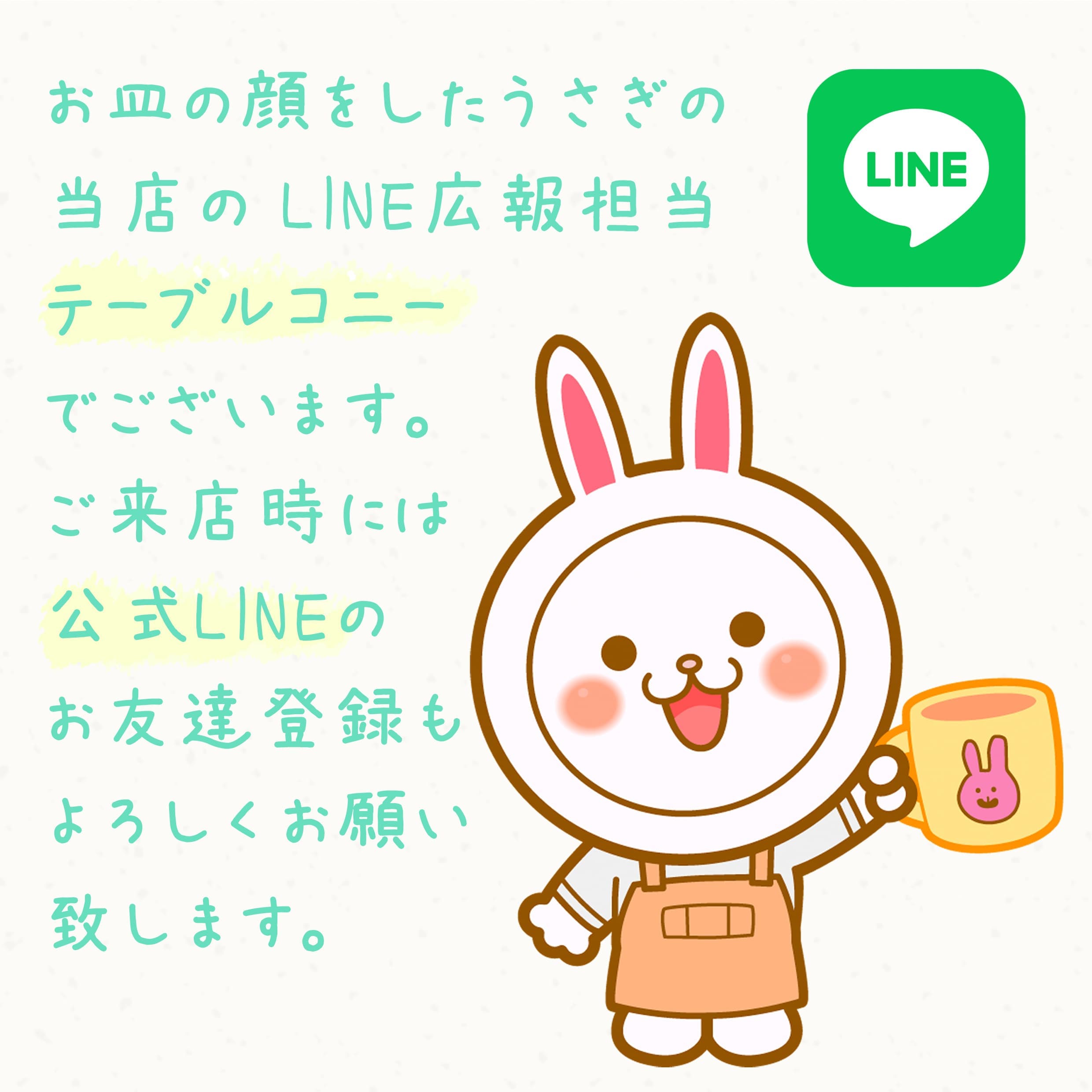 LINE公式アカウントは月に1〜2回に割引クーポン券、期間限定・数量限定・新着情報などを配信いたします。お友だち登録特典として、ご登録時にはその日のお買い物合計より¥1000円毎に50円の割引もございます。お友達のご登録は店頭にて承っております。配信はテーブルコニーが担当でございます。